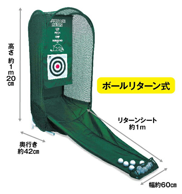 スコアメイクの鍵になるアプローチショットがご自宅で好きなだけできる練習セット。 ランニング、ピッチ、チップ、ロブの打ち分けに対応するターゲット付きで、ゲーム感覚で楽しみながらレベルアップ! お部屋での練習に好適な軟らかいセーフティーボール6個付き。もちろん自信のある方はゴルフボールで練習可能。アプローチの引き出しを増やして、いざスコアアップ! 打ったボールが手前に戻ってくるボールリターン式で、ボール拾いがラクラク!組み立て簡単!折りたたんでコンパクトに片付けられます。 ■サイズ(約):使用時=幅60×奥行42×高120cm、リターンシート100cm ■材質:本体=ポリエステル・ナイロン・スチール・塩化ビニール樹脂、セーフティーボール=ポリウレタン ■生産国:中国(セーフティーボール:台湾) ※熨斗・ギフト包装等は出来ません。 ※北海道・沖縄・離島の一部地域や山間部への配送は出来ません。 ※メーカー在庫切れの場合がございます。 ※配送不可地域やメーカー在庫切れの場合、ご注文をお取り消しさせて頂く場合がございます。あらかじめご了承ください。