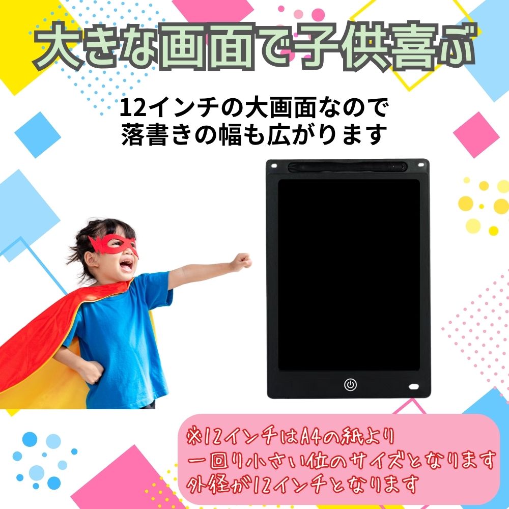 電子メモパッド お絵かきボード 落書き帳 12インチ タブレット 子供 薄型 軽量 メモ帳 勉強 小型