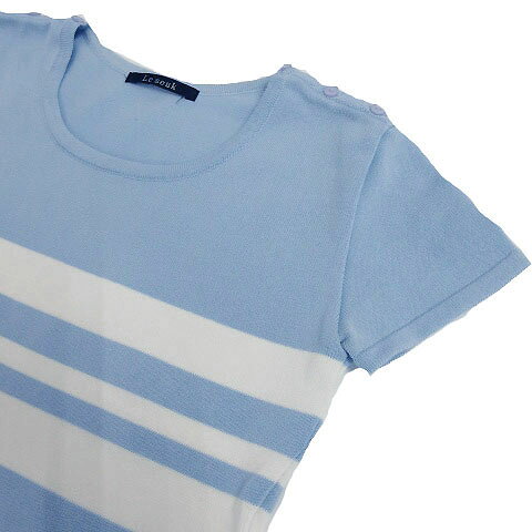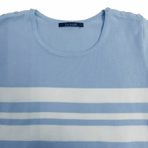 【中古】ルスーク Le souk ニット 半袖 ボーダー コットン混 ライトブルー 水色 ホワイト 白 38 レディース 【ベクトル 古着】 210214 ベクトルプレミアム店