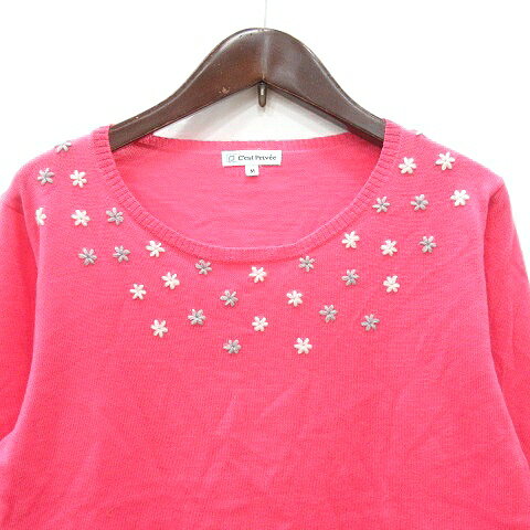 【中古】セプリベ C'est Privee ニット カットソー 刺繍 長袖 ウール M ピンク /MN レディース 【ベクトル 古着】 241025