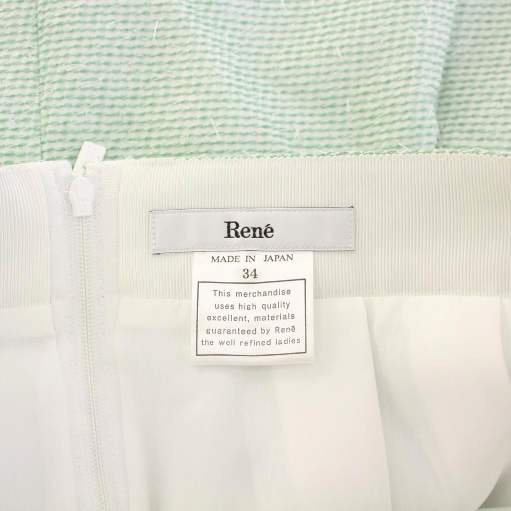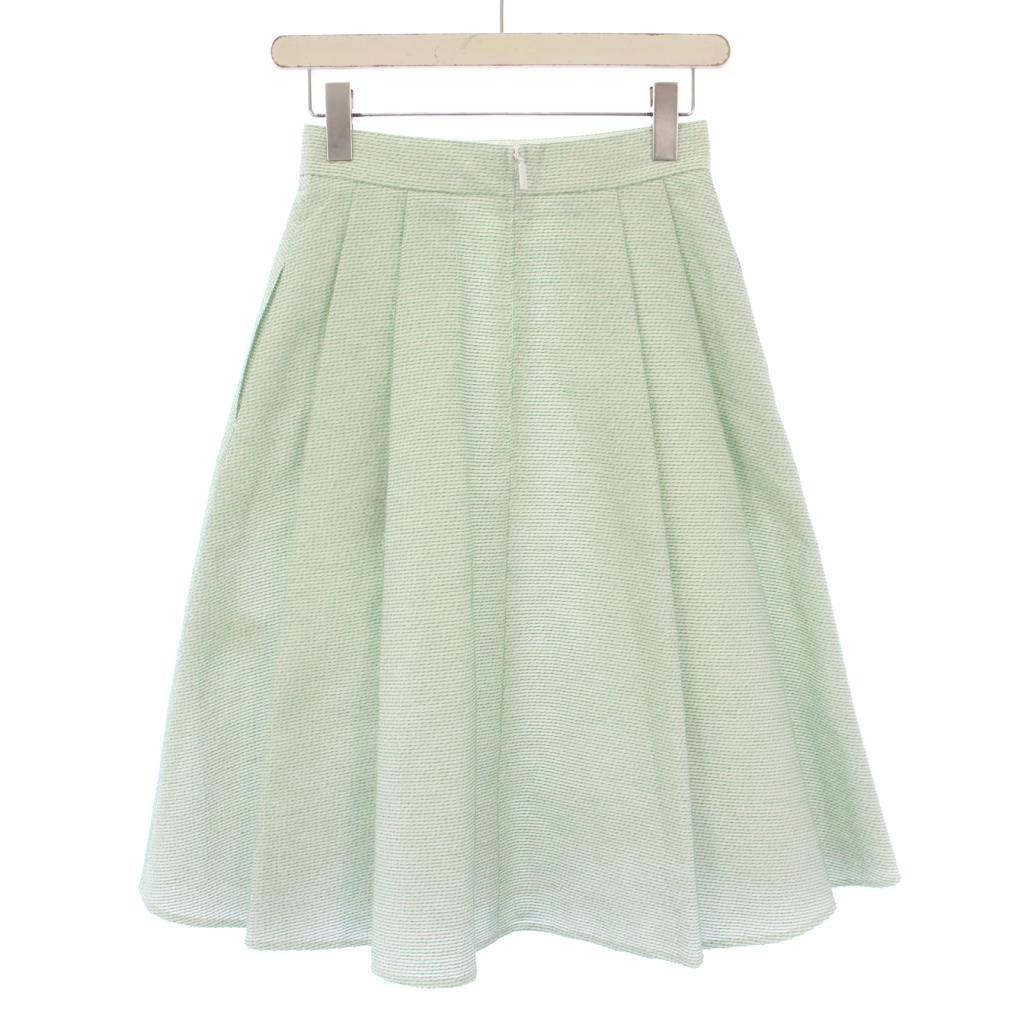 【中古】未使用品 ルネ Rene TISSUE社製 プリーツスカート フレア ひざ丈 バイカラー 34 緑 グリーン 白 ホワイト タグ付き /BB レディース 【ベクトル 古着】 250825