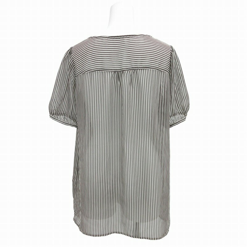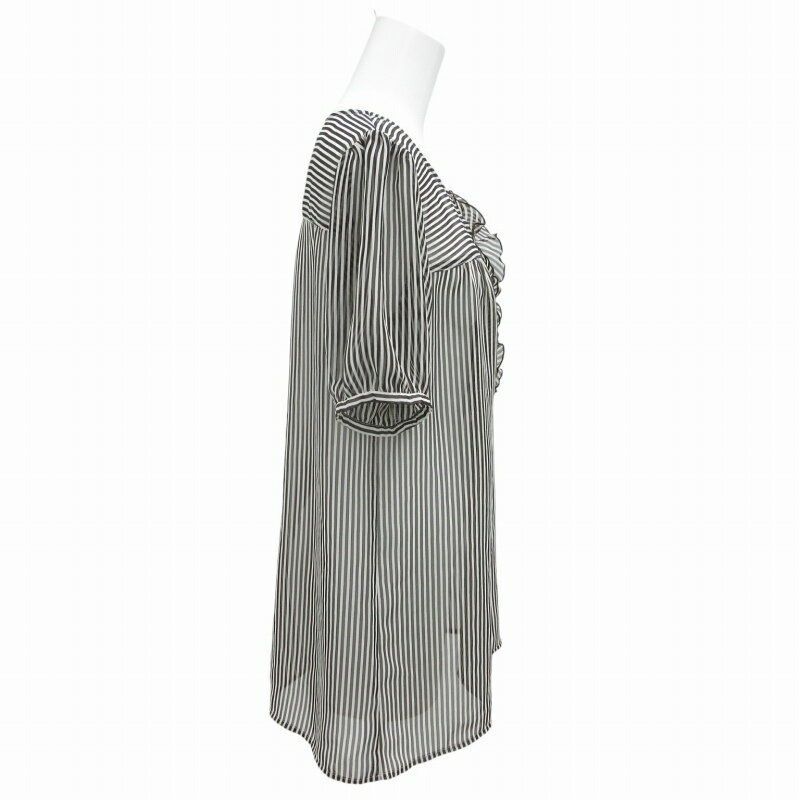 【中古】プーラフリーム pour la frime ブラウス カットソー ストライプ フリル シアー 半袖 M 黒 ブラック /HD 0925 レディース 【ベクトル 古着】 240925