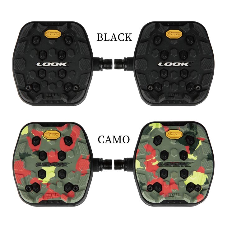 ■カラー:BLACK、CAMO、LIME、RED ■重量:265g(片側) ■ボディ素材:VIBRAM(ビブラム)ラバー・合成素材 ■シャフト素材:クロモリ合金製 ■Q-ファクター幅:63mm ■JAN: 【3611720185686】BLACK 【3611720190246】CAMO 【3611720190222】LIME 【3611720190239】REDLOOK TRAIL GRIP 【TRAILシリーズ】 TRAILシリーズはその名の通り、オフロードにおいて安全かつ快適に使うプラットフォームペダルです。 強いグリップ力を発揮するビブラムラバーに凹凸をつけて更なるグリップ力を手に入れたTRAIL GRIP。 ビンディングの設定はありませんが、シューズとの一体感はフィールドで新鮮な感覚と楽しさを手に入れることができます。 踏み面にビブラムラバーを採用したTRAIL GRIPは、強いグリップ力を発揮するビブラムラバーに、更なるグリップ力を手にするために凹凸をつけました。 ブラックカラーに染められたスパイク状の8つの凸部は、グリップの要とともにデザイン上のアクセントでもあります。 外周部のブロック表面に施された格子状の細かなスリットにより、ウェット時の更なるグリップと良好な泥はけを達成。 泥汚れも水洗いで簡単に落ちます。 ビブラムラバーはオプションで別のカラーに取り換えが可能で、カスタムを楽しむことも出来ます。 【関連商品】 TRAIL GRIP専用VIBRAMラバーグリップ(オプション) LOOK ACTIV GRIP TRAIL PAD <ビブラムについて> 1935年に創立されたスポーツ&アウトドアシューズのアウターソール市場を率いるイタリアブランド。スポーツシューズ業界において多くのブランドとパートナーシップを結んでいます。 (adidas、 Reebok、 GIRO、 THE NORTH FACE、 UNDER ARMOUR、 new balanceなど)