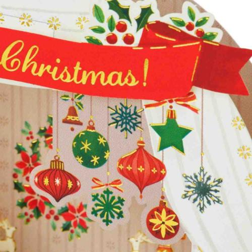 クリスマスカード JX70-4 立体 グリーティングカード CHRISTMAS アーチ枠ツリーのある部屋 サンリオ プレゼント ポップアップ メール便可