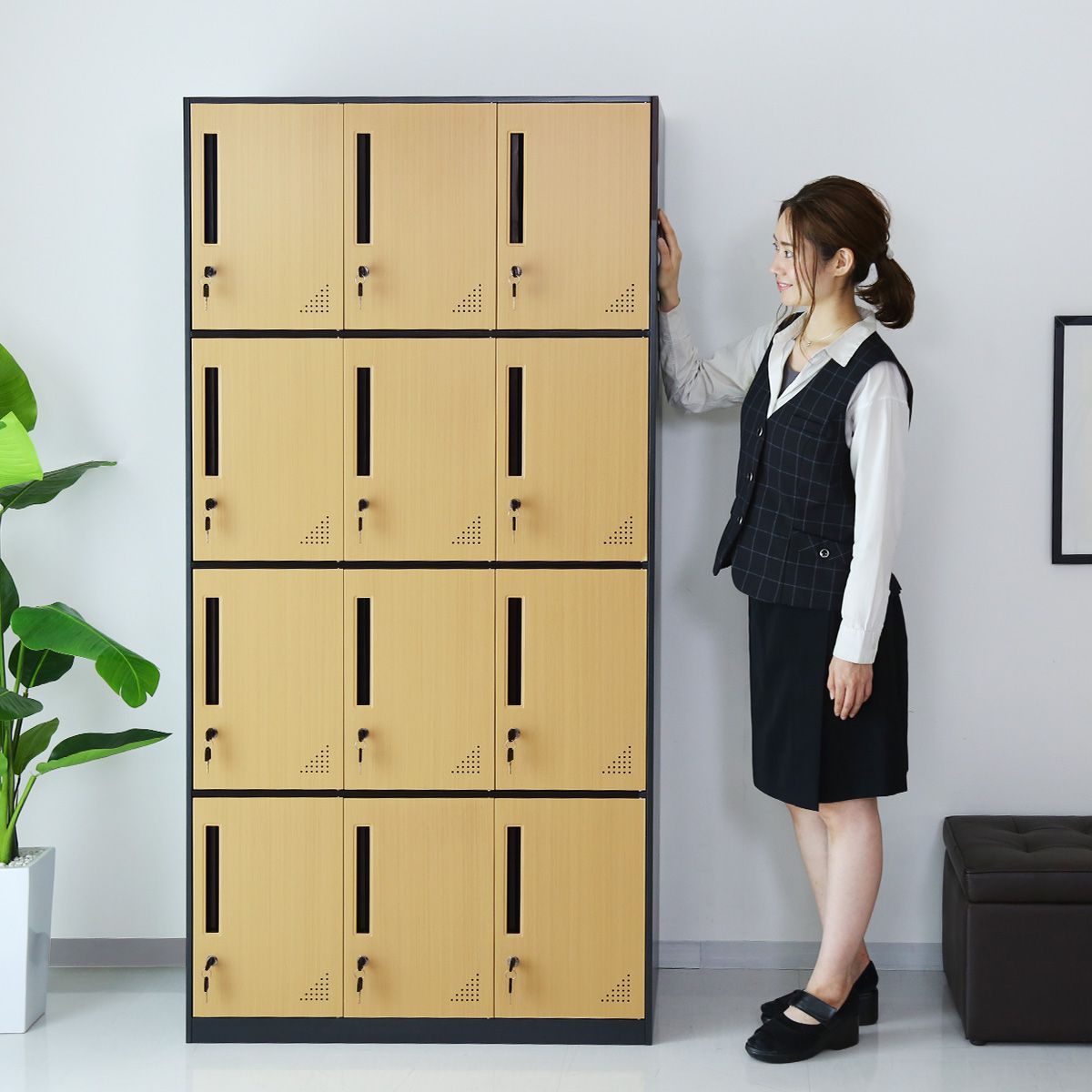 【クーポン20%off 12/4 20時〜24時】 開梱設置サービス対象 スチールロッカー 鍵付き 12人用 ロッカー おしゃれ 鏡付き 幅90 木目調 スチール製 オフィスロッカー 更衣ロッカー かぎ付き 棚付き 病院 施設 オフィス ジム 更衣室 北欧 収納 ゴートン12扉 ドリス