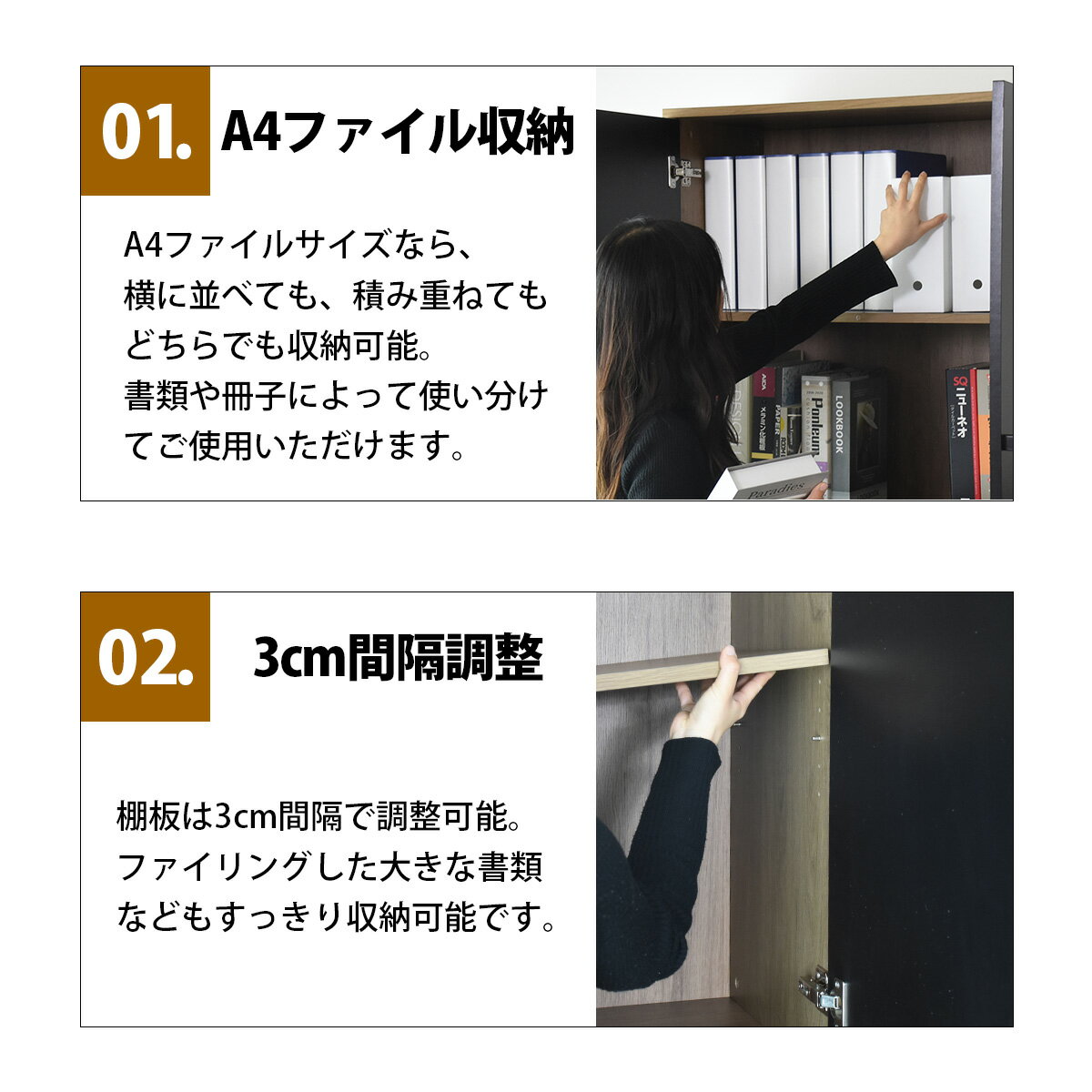 配送について 送料 無料 (北海道・沖縄・離島・一部地域見積り) ●商品詳細 -infomation- 商品名 ナートル(オフィス)【Natore】 サイズ 幅80×奥行41.5×高さ177(cm) ※個体差により若干の差異あり 材 質 メラミン塗装 パーティクルボード・強化ガラス 重 量 約75kg 耐荷重 【棚板】各20kg 梱包サイズ 【梱包1】約幅100×奥行43×高さ18.5(cm)【梱包2】約幅92×奥行45×高さ18.5(cm) 総重量(梱包材含む) 【梱包1】40kg【梱包2】38kg 備 考 ※他商品との同梱は出来かねます。 ※組み立て方や個体差により、サイズ表記と多少の差異が生じる場合がございます。 ※ご使用のモニターやディスプレイ等の環境によって、実際の明るさや色と多少異なって見える場合がございます。 ※その他、記載事項ご確認の上ご注文ください。 【当店の家具・インテリアについて】 お客様に自信を持って、おすすめできる商品のみ取り扱っております。 高い技術があるからこその洗練されたデザインが特徴です。 ソファ、ベッド、ダイニング、デスク、テレビ台など、豊富に取り揃えております。 ランキング上位商品、人気商品、お得な訳ありアウトレット商品、 お買い得な値引き・割引き・セール商品、ポイント変倍商品はお問い合わせが多く、 数に限りがありますので、お早目にお買い求めください。 あす楽配送の即日発送(即納)商品もございますので、急なご入用にも出来る限り対応させていただきます。 【DORIS家具の特徴】 日々の暮らしに役立つものをシンプルなものから個性的なものまで幅広く取りそろえ、 年代、性別、利用シーンにとらわれず、誰もが手軽に取り入れられる家具をコンセプトに、 リラックスシーンからビジネスシーンまでお使いいただける商品を提供しております。 【セット商品について】 ソファとテーブルセット、デスクと収納セット、ダイニングセット等のセット商品もございます。 お部屋の広さやシーンに応じたセットをご用意いたしました。 【使用用途 ※以下のようなシーンでご使用いただけます。】 モダン カントリー インダストリアル ナチュラル 北欧モダン シンプル ミッドセンチュリーアンティーク クラシック コースタル 海岸風 アジアン モロッコスタイル シャビーシック カントリー調 和モダン 和風 姫系 フェミニン 【対象 ※以下のような方に多くご利用いただいております。】 年代:20代 30代 40代 50代 60代 70代に対応しております。 ひとり暮らし 一人暮らし ファミリー 家族 メンズ 男性向け レディース 女性向け キャリア世代 ヤング ミドル ミセス アダルト シルバー シニア世代 お嬢様 娘様 お嫁様 奥様 お母様 お義母様 御祖母様 お孫様 【贈り物に ※以下のような節目や祝い事でのプレゼントとしてもご好評いただいております。】 新社会人 新成人 結婚祝い 成人祝い 就職祝い 誕生日 母の日ギフト 父の日ギフト クリスマス 新生活ツートンカラーがおしゃれな収納 よく見かける白黒の無機質な収納とは一味違う黒×木目のおしゃれな収納です。 「オフィスをワンランク上の素敵な空間にしたい」「堅苦しくないカジュアルオフィス空間を目指している」「お家で他の家具との調和のとれるおしゃれな大型収納を探している」という方にぴったりの収納です。 A4サイズも余裕で収納できるサイズ感 最もポピュラーなA4サイズはもちろん、少し高さのある書類や書籍にも対応できる絶妙なサイズ感となっております。 奥行きもしっかりあるので、横に並べても積み重ねても収納が可能です。 大容量の収納スペース 中央の棚板は固定ですが、上下の棚は可動棚になっているので用途に応じて、調整してご使用いただけます。 ※上下の稼働棚は取り外し可能ですが、扉との建付けの兼ね合い上、必ず設置してご使用ください。 3cm間隔で調整できる棚板 「棚がもう少し高かったら/低かったら良いのにな」という経験はございませんか? こちらの収納は棚板を3cm間隔、5段階調整することができます。 お手持ちの収納物にぴったりのサイズに調整してきれいに収納することができます。 収納物を守る扉 透けない扉なので、重要書類など外から見えてほしくないものを収納するのに適しています。 プライバシー保護もできて安心安全です。 鍵付きでセキュリティ対策 大事な書類やもの収納する際に選びたい鍵付き収納。 上下どちらも鍵をかけられるのはうれしいポイントです。 ※鍵は別売りしておりませんのでお取扱いにご注意ください。 同シリーズの収納と合わせて素敵なカジュアルオフィス 統一感のあるおしゃれなオフィスだと出社が楽しくなりますね。 落ち着いた色味できちんと感もありつつカジュアルで快適な職場を作ることができます。 ※写真は同シリーズの収納とコーディネートしております。ページ下のリンクも合わせてご覧ください。 おすすめの関連商品はこちらRECOMMEND 2段2列タイプ 2段3列タイプ 4段2列タイプ 配送について 送料 無料 (沖縄・離島・一部地域見積り)