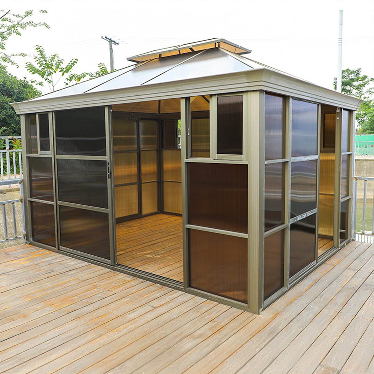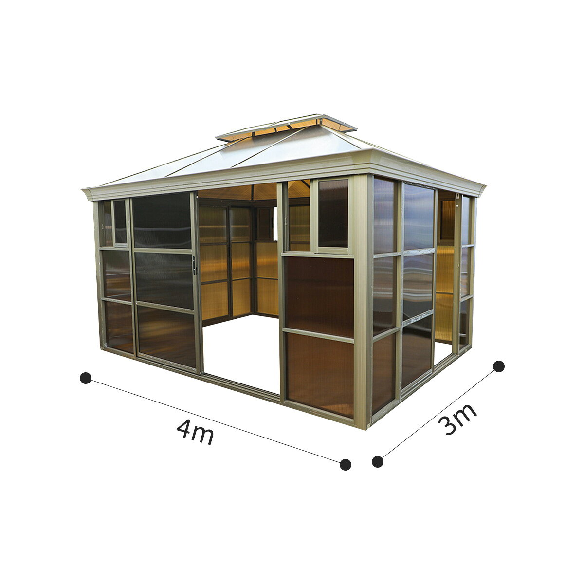 VeroMan 高級感漂うダブルトップ屋外ガゼボ 耐久性抜群のアルミフレーム設計 通気性も兼ね備えたデザイン 韓国インテリア [高さ3m×幅4m]