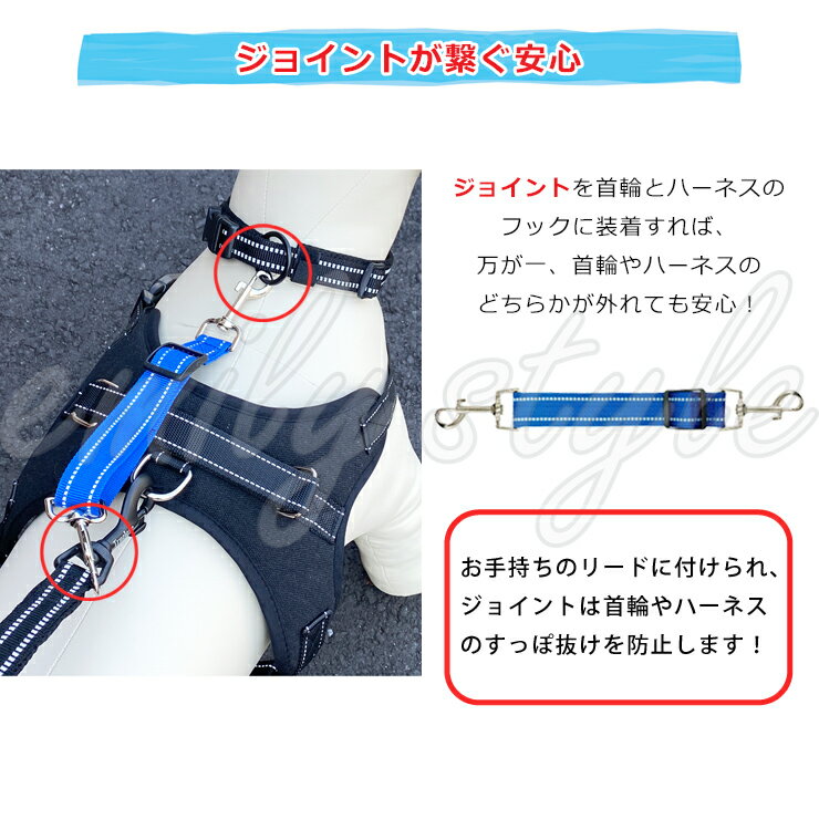 【首輪とハーネスをつなぐジョイントリード】 ジョイント フック すっぽ抜け防止 外れ防止 便利 ダブルリード 二重リード 事故防止 散歩 お出かけ 小型犬 中型犬 大型犬 エミリースタイル emilystyle