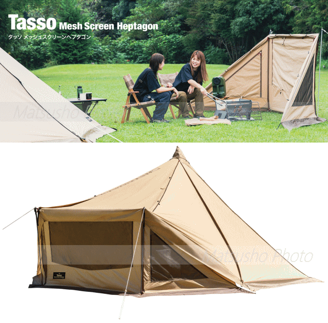 商品画像は実際のカラー・デザインが異なって見える場合があります。またメーカーにてお断り無く仕様を変更する場合等がございます。 商品形状により他商品との同梱発送ができない場合がございます。 ※ご注文日時や内容によっては購入履歴からのキャンセル及び修正を受け付けることができない場合がございます。CAMPAL JAPAN タッソメッシュスクリーン へブタゴン 3511 タッソ用T/Cメッシュスクリーン タッソ七角形展開時用のメッシュスクリーン。単体でウインドスクリーンとしても使用できます。タッソ内へのおこもりキャンプ、天面をオープンして空を眺める、焚火の風防として・・・など様々な使い方ができるメッシュスクリーンです。 タッソへの取り付け時にはフルクローズにもメッシュにもできパネルを巻けば空を眺める事もできます。単体でウインドスクリーンとしても タッソのループ等に取り付けて使用します テント用スクリーンとしても、ウインドスクリーンとしても使える 広く快適に使える内部空間 陣幕(風防)としての使用例 重量 幕体:約1.95kg、ポール:約0.35kg、付属品:約0.25kg 素材 幕体:T/C(耐水圧350mm)スカート:ポリエステル75dポール:アルミ合金φ13mm 収納サイズ 42×18×17cm カラー サンドベージュ×ダークブラウン 付属品 120cmポール×2本、張り綱1.8m×2本、スチールピン、収納袋 JAN 4909232351101 商品管理ID cp-0225 ※製品等の色はご使用になるモニターや設定によって若干の違いが発生する場合があります。 ※製品改良のため予告なくデザイン・仕様を変更する場合があります。 ※サイズ・重量などの数値には若干の個体差があります。 ※タッソ本体は付属しません。 ※スカート部はポリエステル素材を使用しています。 ※陣幕として使用する際は必ずメッシュ部分を閉じスカート部に留意してご使用下さい。 ※本製品はタッソ及びタッソT/Cの七角形使用時にご利用頂けます。 ※タッソULにはお使い頂けません。 ※七角形以外の展開時には形状が合わないためメッシュスクリーンとしては使用できません。 ※本製品はT/Cを使用しておりシームシール加工をしていないため雨が侵入する事があります。 【T/C生地について】 T/C生地はポリエステル65%とコットン35%の混紡素材の為「織ムラ・織キズ・染色ムラ」がございます。素材独特の風合いでございますのである程度の「織ムラ・織キズ・染色ムラ」についてはご了承のうえお求め下さいます様お願い致します。ムラの範囲の商品につきましては交換・修理対象外となります。 【加工マークについて】 撥水加工:撥水性、撥油性、防汚性、耐摩擦性に効果を発揮します。 T/C:ポリエステルとコットンの混紡素材。通気性、吸湿性に優れています。 ※ご注文のお客様へのお知らせ※ 商品形状により他商品との同梱発送ができない場合がございます。