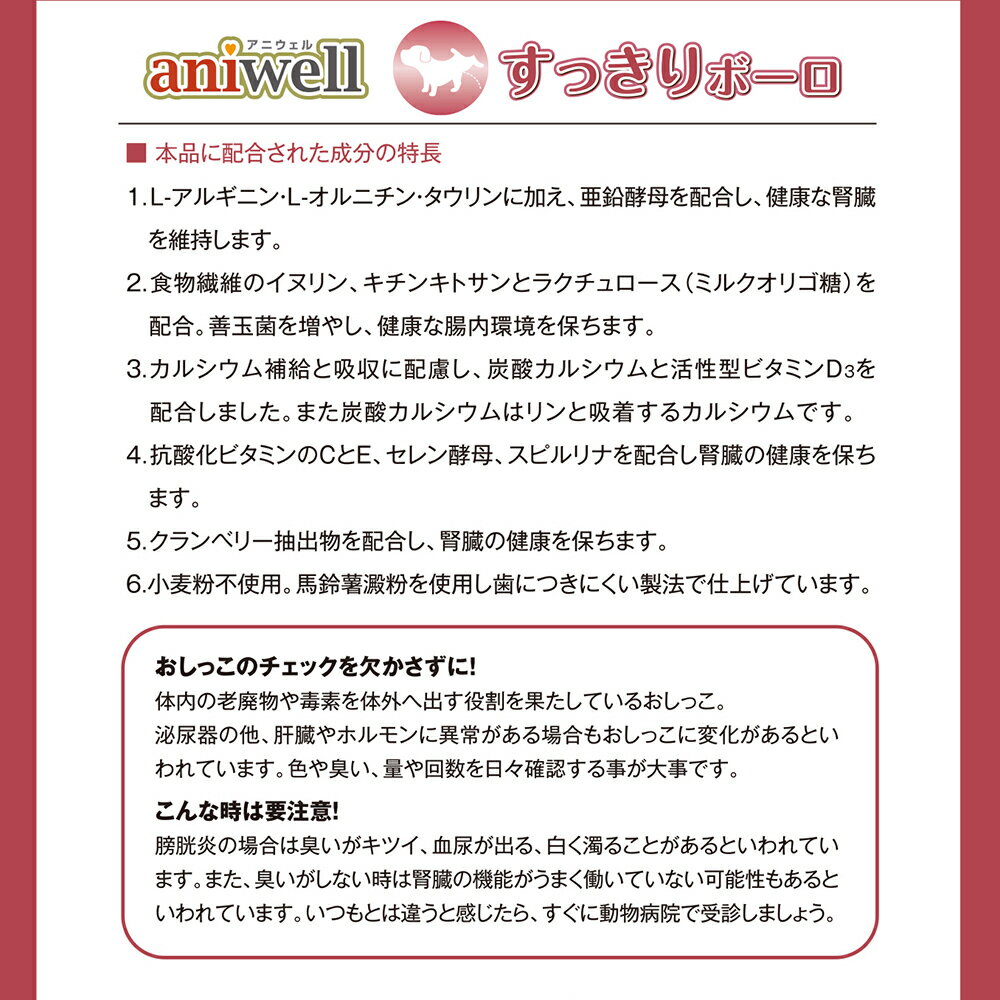 セット販売のため単品での返品は一切お受けしておりません。予めご了承ください。腎臓の健康を保つ機能性ボーロ ・クランベリーや、スピルリナ、L-オルニチンなど、腎臓や尿路器官の健康維持に役立つ原材料を12種類配合しました。 ・獣医師の監修により開発した製品です。 ・リン0.08%、ナトリウム0.03%、カリウム0.08%に含有量を抑えました。 ・砂糖・小麦粉不使用。麦芽糖を使用したヘルシー設計。 ・20g×3袋の小分けタイプ ・日本国内の工場で製造しています。 ■使用上の注意:・本製品は10日から12日程度、愛犬の様子を観察しながら与えてください。まれに愛犬の体調や体質に合わない場合もあります。 ・何らかの異常に気づかれたときは、給与を中断し、早めに獣医師に相談することをおすすめします。 ■保管上の注意:・高温多湿を避け、乾燥した涼しい場所に保存して下さい。開封後は、密封して保管し早めに与えて下さい。 ・幼児、子供の手の届かない場所に保存・保管して下さい。 ■その他注意:○賞味期限:18ヶ月 ■素材・材質:馬鈴薯澱粉、麦芽糖、鶏卵、脱脂粉乳、ホエイパウダー、スピルリナ、オルニチン、キチンキトサン、イヌリン、ラクチュロース、クランベリー抽出物、イノシトール、パームフルーツオイル、炭酸カルシウム、タウリン、亜鉛酵母、L-アルギニン、セレン酵母、塩化コリン、ビタミン類(A、B1、B2、B6、B12、C、D3、E、K2、ナイアシン、パントテン酸Ca、ビオチン、葉酸) ■成分:粗たん白質1.0%以上、粗脂肪2.0%以上、粗繊維1.0%以下、粗灰分1.0%以下、水分10.0%以下、ナトリウム0.05%以下 ■代謝エネルギー:340kcal/100g ■内容量:60g×4個 ■JANコード:4560283514138 ■原産国:日本 ■メーカー:デビフペット ■名称:ペットフード ■賞味期限 :パッケージに記載 ■販売者:ペットゴー株式会社 0120-958-046 ■区分:ペットフード ■広告文責:ペットゴー株式会社 0120-958-046 ■更新日時:2025/11/15 11:07:51 <免責事項>本サイトに掲載されている商品情報は、商品パッケージやカタログ、またはメーカーから提供された情報に基づくものであり、その内容について当社は責任を負いかねます。これらについてのお問い合わせはメーカーに直接行っていただきますようお願いいたします。また、メーカーによる仕様変更に伴い商品の表記と実際の仕様が異なる場合がございます。