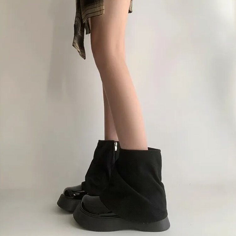 ショートブーツ レディース ラウンドトゥ ブーツ 厚底ブーツ 厚底 ブーツ ショートブーツ 韓国ファッション 可愛い ボリュームソール 痛くない サイドファスナー 秋冬 春 ブーツ くしゅくしゅブーツ