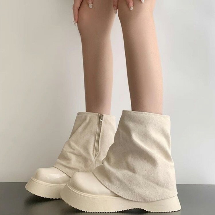 コロンとしたフォルムが可愛い♪足首カバーで足細見え!ボリュームたっぷりのくしゅくしゅルーズ感が可愛い、他にないデザインで、おしゃれを楽しんでください♪足首カバー部分は綿麻調素材で、秋冬はもちろん、春ブーツ、夏ブーツとしても履けるシーズンレスなブーツだから、ヘビロテ間違いなし!ゆったりとしたラウンドトゥ、指に優しい履き心地で足が痛くならない厚底ブーツ。 サイズ 22.5cm 23cm 23.5cm 24cm 24.5cm 25cm サイズについての説明 22.5cm 23cm 23.5cm 24cm 24.5cm 25cm 素材 PU ポリエステル 色 オフホワイト キャメル ブラック 備考 ●サイズ詳細等の測り方はスタッフ間で統一、徹底はしておりますが、実寸は商品によって若干の誤差(1cm〜3cm )がある場合がございますので、予めご了承ください。 ●商品の色は、撮影時の光や、お客様のモニターの色具合などにより、実際の商品と異なる場合がございます。あらかじめ、ご了承ください。 ●製品によっては、生地の特性上、洗濯時に縮む場合がございますので洗濯時はご注意下さいませ。 ▼色味の強い製品によっては他の衣類などに色移りする場合もございますので、速やかに(脱水、乾燥等)するようにお願いいたします。 ▼生地によっては摩擦や汗、雨などで濡れた時は、他の製品に移染する恐れがございますので、着用の際はご注意下さい。 ▼生地の特性上、やや匂いが強く感じられるものもございます。数日のご使用や陰干しなどで気になる匂いはほとんど感じられなくなります。