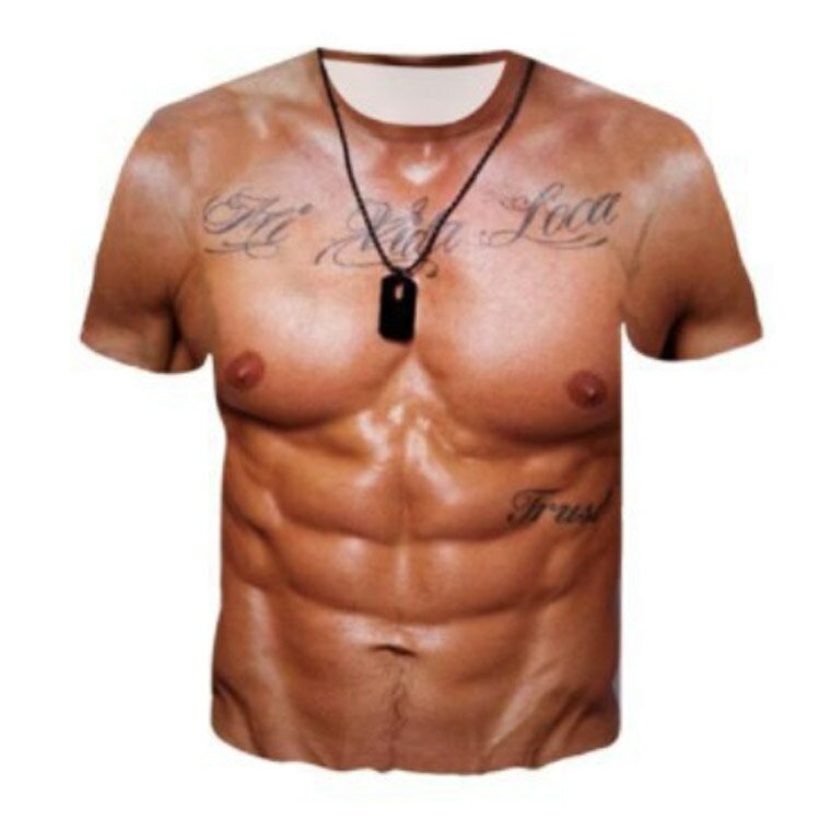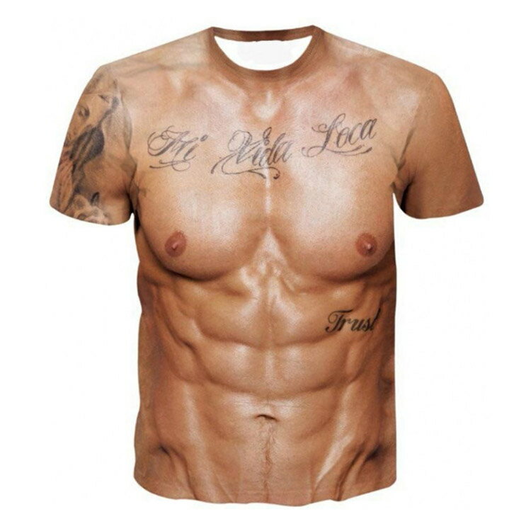 筋肉Tシャツ メンズ Tシャツ tシャツ 半袖 コスプレ 仮装 コスプレ 筋肉服 マッチョ 偽筋肉 偽腹筋 3Dデジタル プリント グラマー男性 仮装 イケメン筋肉 ハロウィン おもしろ お祭り 新年会 忘年会 宴会 夏物 送料無料 大きいサイズ