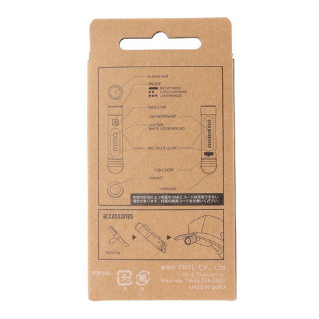 【セット内容】USBコード●中国製●5050WORKSHOP MICROLight(マイクロライト)は、手のひらサイズの極小フラッシュライト&ランタンです。フラッシュライトは4段階の明るさ調節が可能で最大350ルーメン(インスタントモード)の明るさで、ランタンは昼白色と電球色の切替が可能。それぞれ3段階の明るさ調節が可能で70ルーメンと小さいながらもしっかりとした明るさを確保。本体にはマグネット内蔵でちょっとした作業などでも活躍します。付属品のクリップを併用して防止のつばに取り付ければヘッドライトとしても使用することができます。●サイズ:約64×16×16mm●重量:約20g●動作環境:0〜40度●バッテリー:リチウムポリマー蓄電池(230mAh)●容量:230mAh(3.6V)●入力:DC5V/0.5A●LEDライト:【昼白色LED】フラッシュライト/ランタン 【電球色LED】ランタン●防塵防水等級:IP44●充電時間:約2h【商品の購入にあたっての注意事項】※一部商品において弊社カラー表記がメーカーカラー表記と異なる場合がございます。※ブラウザやお使いのモニター環境により、掲載画像と実際の商品の色味が若干異なる場合があります。※掲載の価格・製品のパッケージ・デザイン・仕様について、予告なく変更することがあります。あらかじめご了承ください。5050ワークショップ 5050WORKSHOP トライル TRYL エルブレス ヴィクトリア ビクトリア Victoria L-Breath アウトドア照明器具 ライト 照明 LEDライト ランタン 明るさ調整 手のひらサイズ 小さい ミニマム コンパクト 持ち運び アウトドア キャンプ 登山 トレッキング 車内 車中泊 ウォーキング 散歩 野外 キャンプ用品 キャンプグッズ 防災 停電 節電 防災用品 備え 非常用 防災グッズ 防災対策 防災 Lfzdry2003B 防災グッズ ライト_23 エルブレス pm防災装備 lb2305_フェス_ エルブレス_lp_ランタン bousai_vg_0710 林間便利_エルブレス_banner_lb240426 ulハイキング エルブレス lp_light_240516