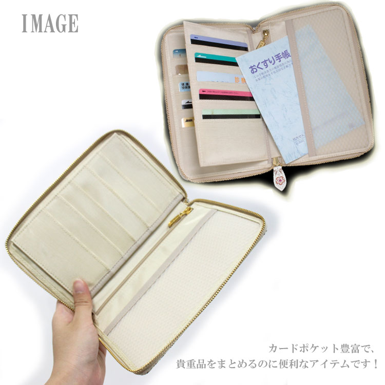 \P2倍+クーポン/ 送料無料 浅草文庫 花菱 お薬手帳 ポーチ 和風 牛革 工芸 日本 便利 オシャレ