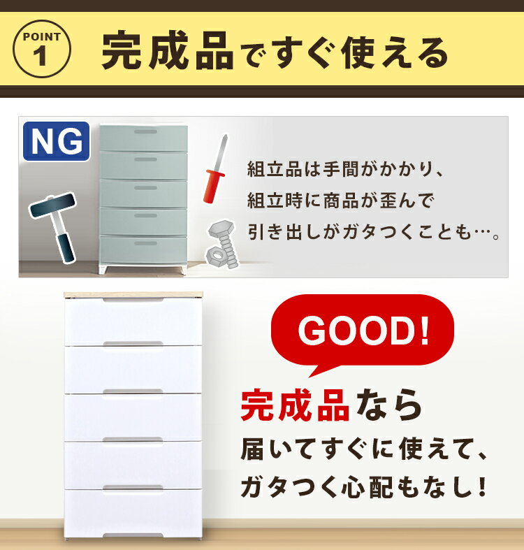 ※この製品はキャスターの取り付けはできません。 ※現在、お届け日のご指定はお受付出来かねております。 ※配送先住所・カラー・数量などの入力間違いが増えています。ご注文後の注文内容変更はお受付致しかねます。再度ご確認ください。 ※ホワイト/ナチュラルのカラーについて:箱に「ホワイト/ペアー」とカラー表記がございますが、本ページで販売しております商品(ホワイト/ナチュラル)と同一商品となります。予めご了承下さい。★☆★リビングの収納にぴったり!木天板付きワイドチェスト★☆★木天板の角は、丸みを帯びた仕上げになっています。耐水性に優れた素材の木天板です。引出しは厚手のセーター等が2枚ゆったり収納できます。開閉がスムーズな金属スライドレールなので、ラクラク引き出せます♪■サイズ(cm):約幅73×奥行41.5×高さ138 ■引出し内寸(cm):約 幅64.5×奥行36×高さ14.5 ■耐荷重:天板 約10kg、引出し 約6kg、全体 約52kg ■主要材質:天板:合成樹脂化粧繊維板(塩化ビニル樹脂・MDF) 本体・引出し:ポリプロピレン、スチール(レール部) 前パネル:ポリプロピレン ★【幅72cm】ラクラク引き出しウッドトップチェスト5段 はコチラ!★【幅55cm】ラクラク引き出しウッドトップチェスト5段 はコチラ!★【幅55cm】ラクラク引き出しウッドトップチェスト7段 はコチラ! 最強翌日配送対象商品に関するご案内 最強翌日配送対象商品・対象地域に該当する場合は最強翌日配送マークがご注文カゴ近くに表示されます。 最強翌日配送可能なお支払方法は【クレジットカード、代金引換、全額ポイント支払い】のみとなります。 下記の場合は最強翌日配送対象外となります。 ・15点以上ご購入いただいた場合 ・時間指定がある場合 ・ご注文時備考欄にご記入がある場合 ・決済処理にお時間を頂戴する場合 ・郵便番号や住所に誤りがある場合 ・最強翌日配送対象外の商品とご一緒にご注文いただいた場合 ・お届け先住所文字数が40文字以上の場合お届け先が沖縄・離島の場合、お届け日時のご希望に沿えない場合がございます。予めご了承ください。 ご注文前のよくある質問についてご確認下さい[ FAQ ]