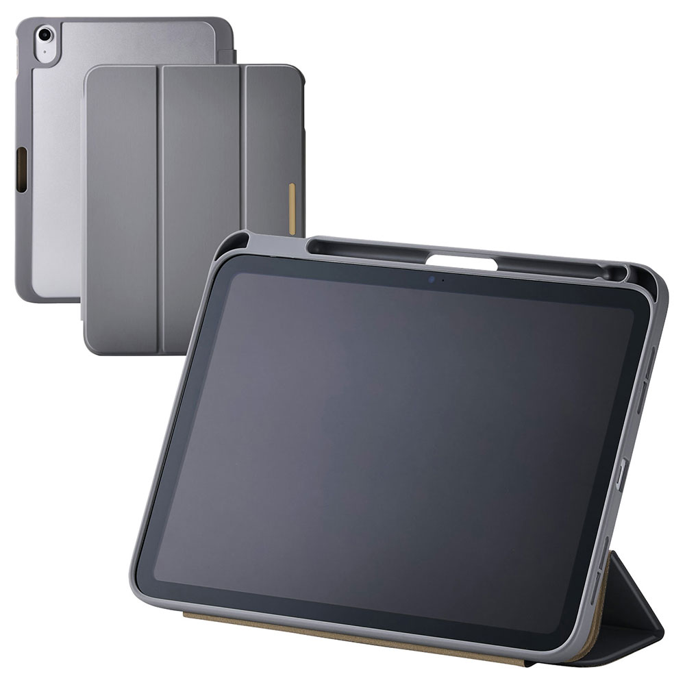iPad A16 第11世代 11インチ 2025年 10.9インチ 第10世代 2022年 ケース ソフトレザー CHIC STYLE 背面クリア チャコールグレイ TB-A25RWVJM3GYさらりとした表面の質感とゴールドパーツで上品さを演出するフラップケースです。背面はクリアで端末のデザインを引き立てます。■さらりとした表面の質感とゴールドパーツで上品さを演出するフラップケースです。 ■上品な色味の合成皮革とゴールドパーツで、シックな印象です。普段使いはもちろんオフィスなどの幅広いシーンで使用できます。 ■背面はクリアタイプで端末のデザインを引き立てます。 ■傷に強く、傷が付いた場合も目立ちにくい、さらりとした質感の合成皮革を使用しています。 ■側面に弾力性のあるTPU(熱可塑性ポリウレタン)素材を、背面に指紋の付きにくいポリカーボネート素材を使用しています。 ■動画視聴やタイピングなどのシーンに合わせて2つのスタンド角度を選べます。 ■持ち歩き時に画面を保護するフラップ付きです。フラップを閉じるとスリープモードになり、開けるとスリープから復帰します。 ■フラップはマグネットで簡単に留めることができます。 ■タッチペンホルダーにApple Pencilを差し込んで持ち運び可能です。 ■ケース内側は端末を傷つけにくい起毛素材を採用しています。 ■ケースを装着したままで画面の確認、充電、各種ボタン操作、写真撮影が可能です。メーカー希望小売価格はメーカーカタログに基づいて掲載しています