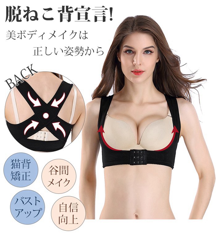 猫背ベルト レディース コルセット X型強力加圧・美胸美姿勢・バストアップ 姿勢ベルト 谷間できる 脇肉スッキリ 姿勢サーポート 寄せ上げ 快適 通気性 調整可能 脱着便利 背筋サポート ベルト 女性用