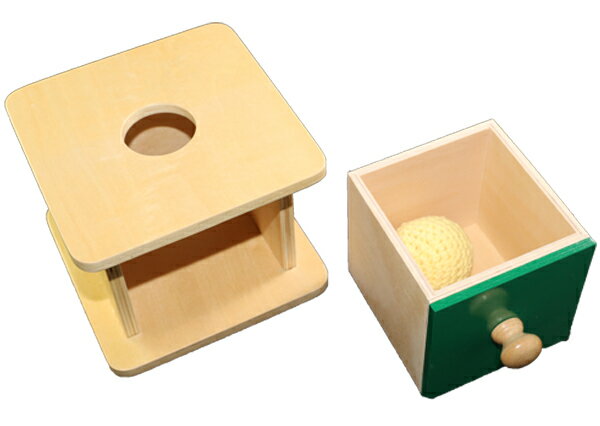 モンテッソーリ 引き出し付ニットのボール落とし Montessori Imbucare Box with Drawer 知育玩具 乳児、ヨチヨチ歩き向き Infant & Toddler 感覚教育 Sensorial 推奨年齢 6ヶ月ぐらいから90才まで。(大人も楽しいです。) 引き出しタイプの木製ボックスです。上部の丸い穴からボールを落として遊びます。ニットのボール付。ちょうどこのころの乳幼児は歯がでてきたりするため「噛みつく」ことのできる玩具が大好きです。ニットのボールはその点木製に比べて最適です。 ♪洗濯を繰り返すとニットが縮むため当初は多少大き目のサイズで穴に入りにくいかもしれません。ご理解願います。♪ ボックスの大きさ:横 14 x 縦 14 x 高さ 11 cm ** 細かなモノや角があるものもありますので、3歳以下のお子様に与える際はご注意くださいませ。親の見守る前で遊ばせるようにしてください。誤飲やケガなどの責任は当店は負えません。免責にご同意いただいたうえでご購入お願い申し上げます。ゆうパックでの発送です。