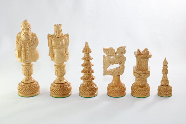 ハンドメイド高級 クリスマス チェス駒セット ♪インド紫檀・柘植♪ キング5.6インチ 手彫り、ハンドメイドの高級チェス駒です。製作会社は国際チェス社会では世界的に有名なメーカーです。(他店のような中国製のものではありません!) クリスマス仕様です。キングはサンタを想起させる造形で、ビショップはツリーになっています。それぞれの駒が個性的です。 このチェス駒セットの製作には通常以上に手間と時間を要します。木材の厳選、重さ・サイズの計測、磨き、すべての工程が職人によるハンドメイドでなされ、価値の高いものです。 駒のスタイル: サンタ・ モデル 材質: 柘植(白)、インド紫檀(黒) キングの高さ: 5.6インチ (14.8 cm) 生産国: インド 盤は別売りです。チェス・ピースのみです。21インチ以上のボードがお薦めです。写真の盤は5.5 x 5.5cmのマスです。 その他のチェス用品はこちらをご参照くださいませ。 店長の私自身がチェスの大ファン(将棋も好きですよ!)です。ときどきブログでチェスの話題に触れています。下手ですけど、どなたか連絡いただければchess.com のIDをお教えいたします。対局しましょう!^^ゆうパックでの発送です。