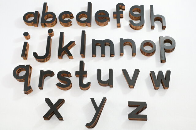 モンテッソーリ 切り抜きアルファベット 小文字 ブラック ♪小、箱なし、文字のみ♪ Montessori Movable Alphabet Lowercase 知育玩具 言語教育 Language 推奨年齢 3歳以上 切り抜いたアルファベット(小文字)です。モンテッソーリ言語教育の代表的な教具です。木製です。 収納箱は付属しておらず、アルファベットのみの販売です。 一文字につき5個入っています。 「a」の大きさは3.1 x 3.5 x 0.2 cmです。 ** 細かなモノや角があるものもありますので、3歳以下のお子様に与える際はご注意くださいませ。親の見守る前で遊ばせるようにしてください。誤飲やケガなどの責任は当店は負えません。免責にご同意いただいたうえでご購入お願い申し上げます。レターパックで発送いたします。
