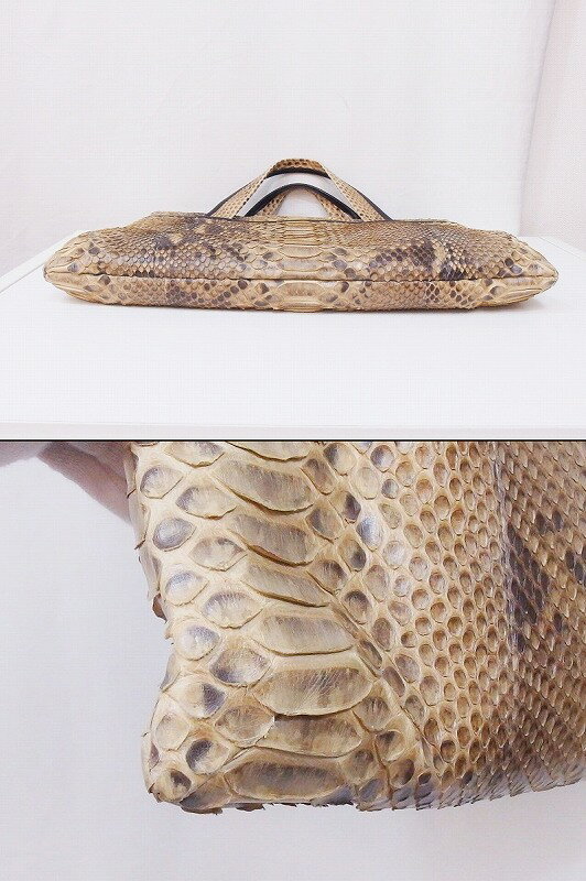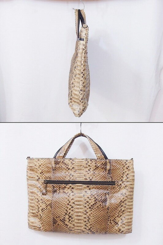 【中古】JRA パイソンレザー ハンドバッグ ベージュ系 nm4208177989