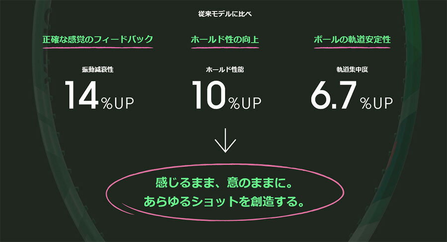 G1 G2 268(オリーブグリーン) 472(ミッドナイトネイビー) 男性用 女性用 ユニセックス 男女兼用 両用 最安値に挑戦!ありがとうございます。楽天ランキングを受賞しました! 4位ヨネックス メンズ レディース パーセプト 100L 硬式ラケット テニス 硬式用 専用ケース付 フレームのみ ネイビー グリーン 緑 送料無料 YONEX 01PE100Lバイタライザー獲得ジャンル:デイリー テニス ラケット 更新日:2025/11/14 (集計日:2025/11/13)yonex ヨネックスってどんなブランド??1957年(昭和32年)に バドミントンラケットの製造を開始。現在まで主力となるテニスラケットの製造を本格化させると共に、1982年(昭和57年)には、社名をヨネックス株式会社に改称。ゴルフ市場に参入し、ゴルフクラブやウェアの製造を開始する。 1995年(平成7年)には スノーボード市場に参入。 また2011年 Jリーグ・柏レイソルとユニフォーム提供契約を結び、初めてチームスポーツであるサッカーへの参入を果たすと共に業績の拡大・安定成長を目論む。 こちらの商品の素材、サイズ、機能など研ぎ澄まされた手のひら感覚で自在にボールをコントロール。攻撃的にボールを操る、軽量オールラウンドモデル。■アイソメトリック:アイソメトリックとは、スウィートエリアを拡大させるヨネックス独自の形状理論。縦横のストリングの長さを均等に近づけることで、一般的な円形フレームに比べ上下左右に広いスウィートエリアを実現。一般的な円形ラケットに比べスウィートエリアが広い。■2G-Namd™ Flex Force:3次元構造のCNT層がカーボン繊維同士の相互作用でエネルギーロスを軽減し変形からの復元力が飛躍的に向上することで、ボールにスピンとパワーを与えます。※ヨネックス(株)調べ■フレックスコンシステム:逆R断面と当社史上最長シャフトが強靭なしなりを生む新シャフト構造。新素材「FlexFuse]が高い柔軟性をもたらし、「2G-Namd™ Flex Force」により復元スピードがアップ。■ロックブースター:グロメットとストリングの密着度を高めた新構造により、ボールを効果的に潰し十分なパワーを生み出す。■SERVO FILTER:伸縮性があり密着性の高い素材をカーボンの層間に使用。成型時の加熱でも硬化せず柔軟性を保持するとともに、振動減衰性が向上。■フェイス面積:100平方インチ■全長:27 inch■フレーム厚:23.0-23.0-23.0(mm)■サイズ:G1・2(平均280g)■バランスポイント:平均330(mm)■ストリングパターン:16×19(本)■推奨張力:40-55(lbs)■推奨ストリング:ポリツアーレブ(PTGR)、ポリツアープロ(PTGP)、レクシススピード(TGRSP)■素材:高弾性カーボン+2G-Namd™ Flex Force+SERVO FILTER※フレームのみの販売です※ガット張りのサービスは行っておりません※こちらの商品は、返品・交換不可となります。※当店では、システムで在庫調整を行っております。在庫更新のタイミングにより、在庫切れの為、稀にご用意できない場合がございます。ついで買いにオススメ!おすすめ送料無料アイテム