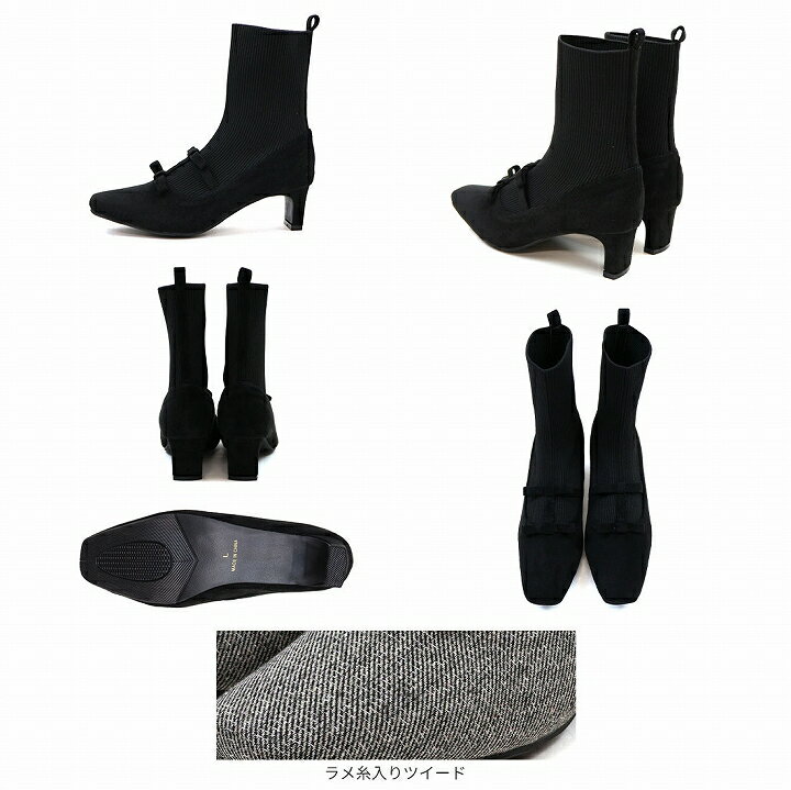 メーカー希望小売価格はメーカー商品タグに基づいて掲載しています→コチラ! リボン ブーツ レディース ニットブーツ ソックスブーツ ショートブーツ 5cm プレートヒール スクエアトゥ チャンキーヒール フェミニン 痛くない 歩きやすい 疲れない 柔らかい 履きやすい 大きいサイズ 小さいサイズ 歩きやすい 走れる 疲れない 走れる 防寒 立ち仕事 オール 幅広 甲高 長時間 疲れない 暖かい 防寒 22cm 22.5cm 23cm 23.5cm 24cm 24.5cm 25cm 25.5cm S M L LL かわいい 可愛い おしゃれ 秋 冬 秋冬 仕事 オフィス ビジネス お呼ばれ 20代 30代 40代 50代 旅行 帰省 ブラック 黒 ブラウン グレー ツイード Minkyme Minky meSPEC サイズ (対応サイズ) 長さ ワイズ 幅 ヒールの高さ 筒丈 履き口周り S(22.0-22.5) 24.2cm 21.5cm 7.6cm 5.0cm 16.8cm 21.6cm M(23.0-23.5) 25.2cm 22.2cm 7.8cm 5.0cm 17.0cm 22.0cm L(24.0-24.5) 26.2cm 22.9cm 8.0cm 5.2cm 17.2cm 22.4cm LL(25.0-25.5) 27.2cm 23.6cm 8.2cm 5.2cm 17.4cm 22.8cm ダブルリボンプレートヒールニットブーツ ・甘さとモードのバランスが絶妙!ニット×リボンの大人カワイイニットブーツ! ・異素材にリブニットをドッキングした足元も盛れるアイテム! ・細めのスクエアトゥ×プレートヒールで脚をスッキリと見せてシャープさのある大人な美シルエットに。 ・シーズンムードのある履き口のリブニットが足にフィットしてあたたかい履き心地 ・結婚式や二次会、女子会などのパーティーに、カジュアルな会食や食事会などのオケージョン・フォーマルシーンにも。 ・長め丈のスカートやワンピースはもちろん、パンツに合わせるスタイリングもオススメ! ◇履きやすさのポイント◇ ・疲れにくい厚手クッションインソール。蒸れにくく前滑りしにくいメッシュ素材の中敷を使用。 ・中底部分にクッション材が入っているので、衝撃吸収に優れ地面からの冷気も防いで暖かい。 ・裏材のサイド、つま先裏はジャージクッション素材でやわらかい足あたり ・屈曲性のあるやわらかい底で力の吸収力がよく、足が痛くなりにくく疲れにくい。 ・伸縮性のあるニット素材で柔らかく足にフィットして履きやすい。 ・安定感のあるヒールで歩きやすい。 素 材 ニット×合成皮革ニット×スエード素材(××S)ニット×ツイード素材 生産国 中国 注意事項 同一のサイズ表記でも商品によってサイズ感が異なる場合がございます。必ずサイズ表をご確認の上サイズのご選択をお願いします。 モデル着用画像はイメージのため、実物の色味と多少差異が生じる場合がございます。 柄物のカラーは左右対称ではございません。 生産時期によって色味に違いが生じる場合がございます。 入荷時期によってインソールのブランドロゴが異なる場合がございます。 手作業による製造工程もございますため多少の傷、凹み、汚れや接着剤のはみ出し等がある場合がございます。 製品によっては原材料特有の匂いがある場合がございます。 素材により、色の薄い靴下などと合わせると色移りする場合があります。 仕入れや発送の際に靴箱が破損する場合がありますが、商品自体に不備がない場合は、そのままの発送とさせて頂きます。 FITTING COMMENT