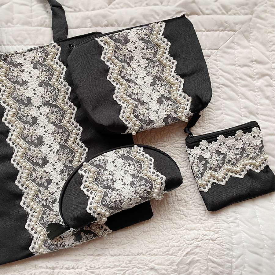 black pearl ブラックパール パールとレースのグラスケース 眼鏡ケース おしゃれ かわいい