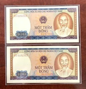 【478499713】Lot 2 コンセ ベトナム 100ドン 1980年 1981年 AUNC UNC紙幣
