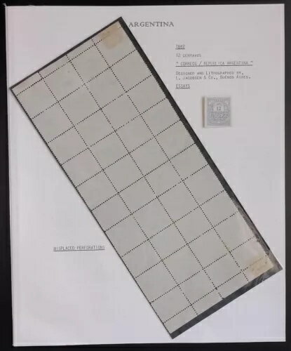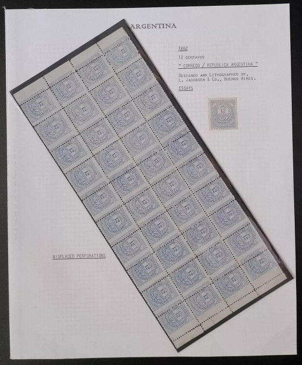 アルゼンチン 1882年 12セント ヤコブセン エッセイ MNH ブロック 40枚