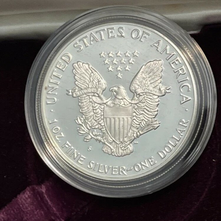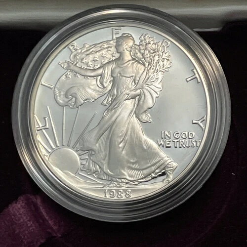 1988年 S $1 プルーフ シルバー イーグル ドル(箱と保証書付き)