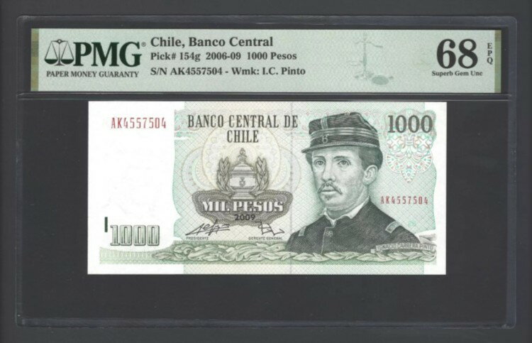 チリ 1000ペソ 2009 P154g 未使用 グレード68 トップポップ