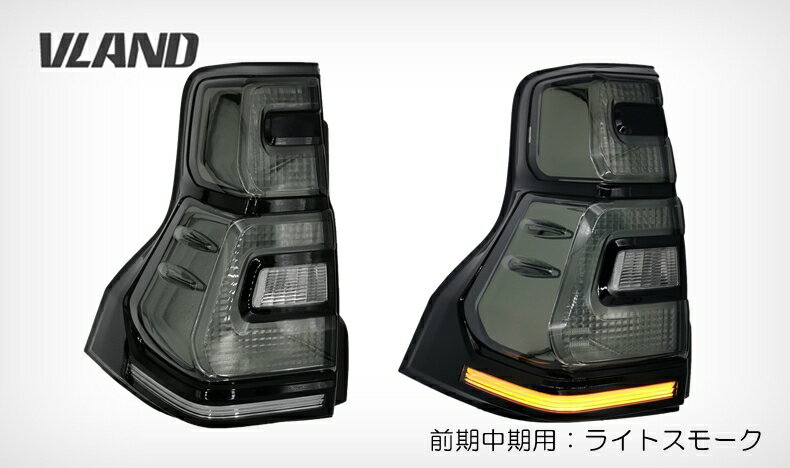 VLAND 流れるウィンカー プラド150 前期中期 後期仕様 LEDテールランプ 後期用もシーケンシャルタイプ追加 レッド スモーク
