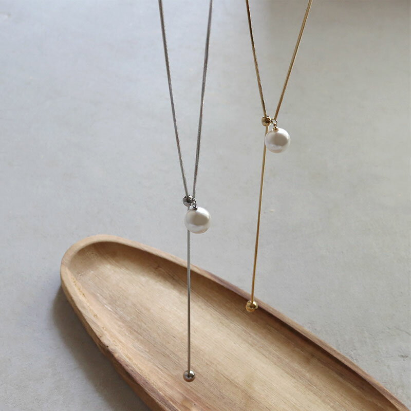 【12/1は20%OFFクーポン+P10倍】 【メール便送料無料】 ネックレス ステンレス レディース Y字 パール メタルボール スライド調節 ロングネックレス サージカルステンレス 金属アレルギー ゴールド シルバー ラリエット シンプル 結婚式 ギフト プレゼント