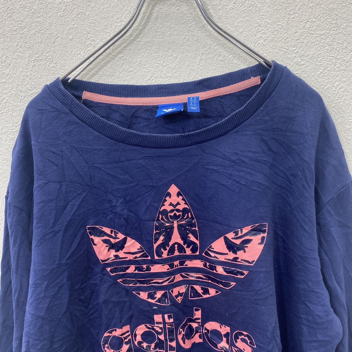 【中古】【古着】 adidas プリント スウェット ロゴ スウェット US M サイズ アディダス レディース ネイビー 古着卸 アメリカ仕入 t2406-3053