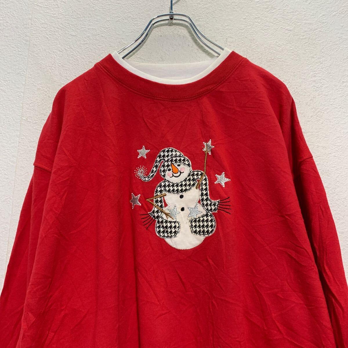 【中古】【古着】 MC Sportswear ロゴスウェット トレーナー L レディース レッド レイヤードネック スノーマン 裏起毛 古着卸 アメリカ仕入 a607-5256