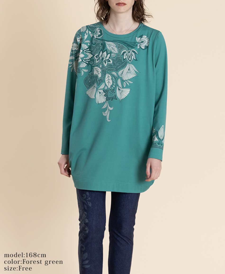 【web限定 30%OFF】mash mania BIGチュニック 花文様【送料無料】/レディース 日本製 洗える 手洗い可 柄 チュニック フォレストグリーン ネイビー マッシュマニア