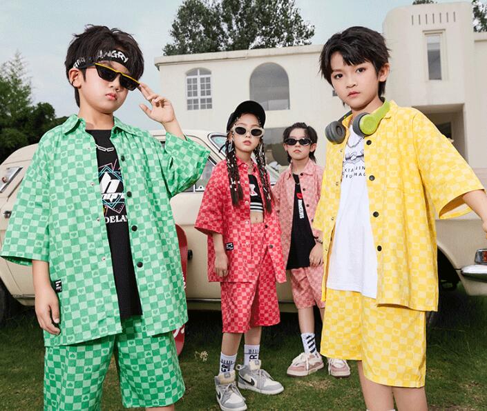 子供ヒップホップダンス衣装 チェック柄 ハート柄 5分袖カーディガンヒップホップ 男子 女子ジャズダンス HIPHOP 2点セット/3点セットチアガール 男女兼用 ステージ衣装 イベント舞台演出服演奏服 練習着 団体服 発表会 ダンス衣装 舞台衣装 110-180cm