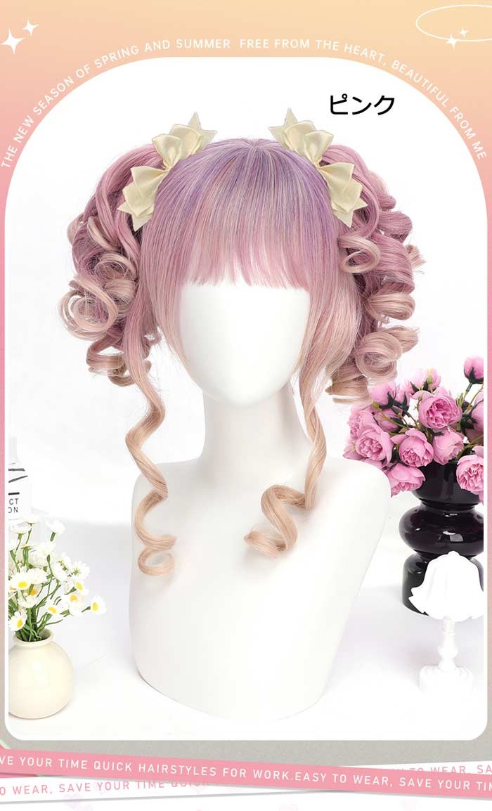ウィッグ フルウィッグ パーマ 短髪 巻き髪 ぱっつん前髪 ロリータ 前髪あり グラデーション ハロウィン 原宿風 韓国風 かつら コスプレ 可愛い コスチューム 仮装 大人用 普段使い 文化祭 イベント 学園祭 演劇 舞台 学芸会 ピンク シルバー ゴールドm3lc