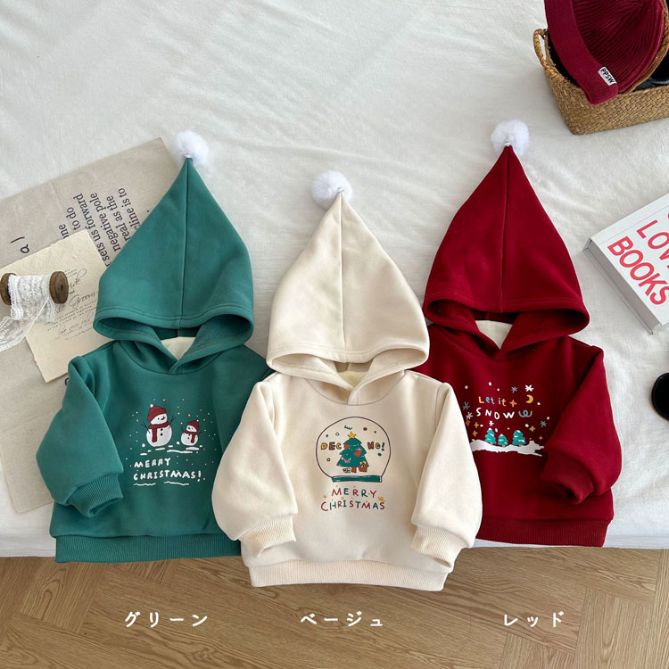 ベビー パーカー 子供服 クリスマス 衣装 トップス 女の子 男の子 サンタ風 サンタさん コスプレ キッズ トナカイ フード付き トレーナー 裏起毛 パーティー イベント 出産祝い お出かけ 新生児 幼児 普通着 幼稚園 保育園 厚手 かわいい