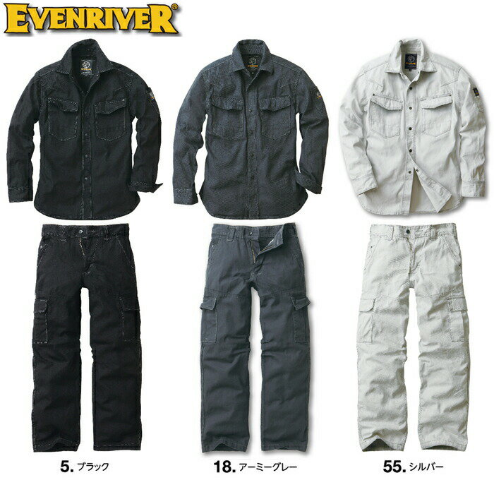 作業服 上下セット イーブンリバー EVENRIVER フィッシャーストライプシャツ US-1106 M-3L & カーゴ US-1102 S(74cm)-4L(95cm) 通年 綿100% 作業着 メンズ