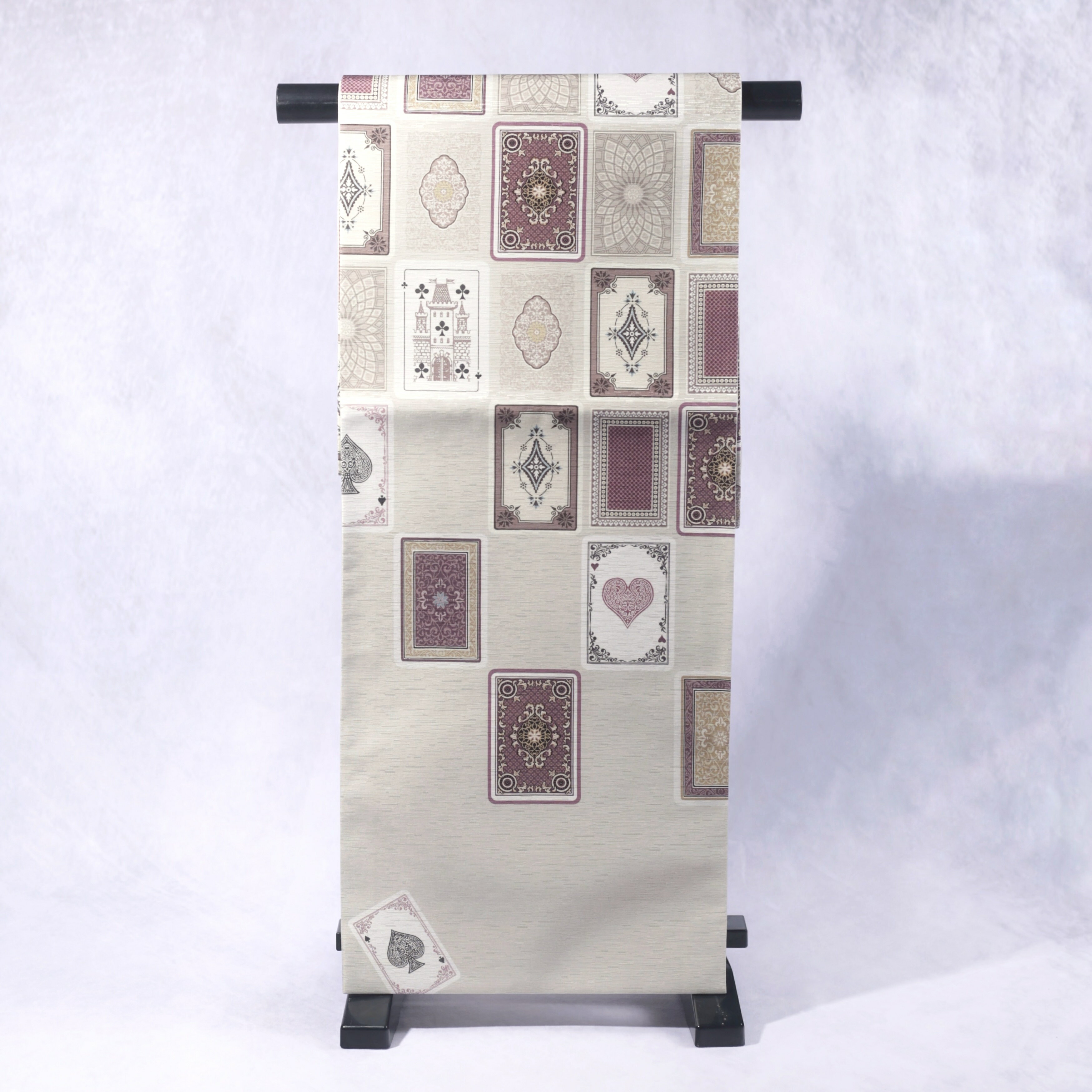 WAKKA 正絹 京袋帯 【大富豪/ベージュ】 仕立て上がり 着物 小紋 紬 帯 カジュアル お洒落着 一重太鼓 OB-40
