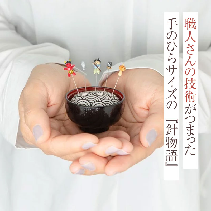 金沢のお針箱 針物語シリーズ (針山・手作り待ち針5本セット)一寸法師 裁縫 まち針 刺し子 日本製 ミニチュア インテリア 手作り プレゼント 海外 人気 ハンドメイド 手芸 おしゃれ 人気 かわいい 贈り物 山中漆 漆塗り 能登二越ちりめん石川県 お土産 能登 ちりめん 話題