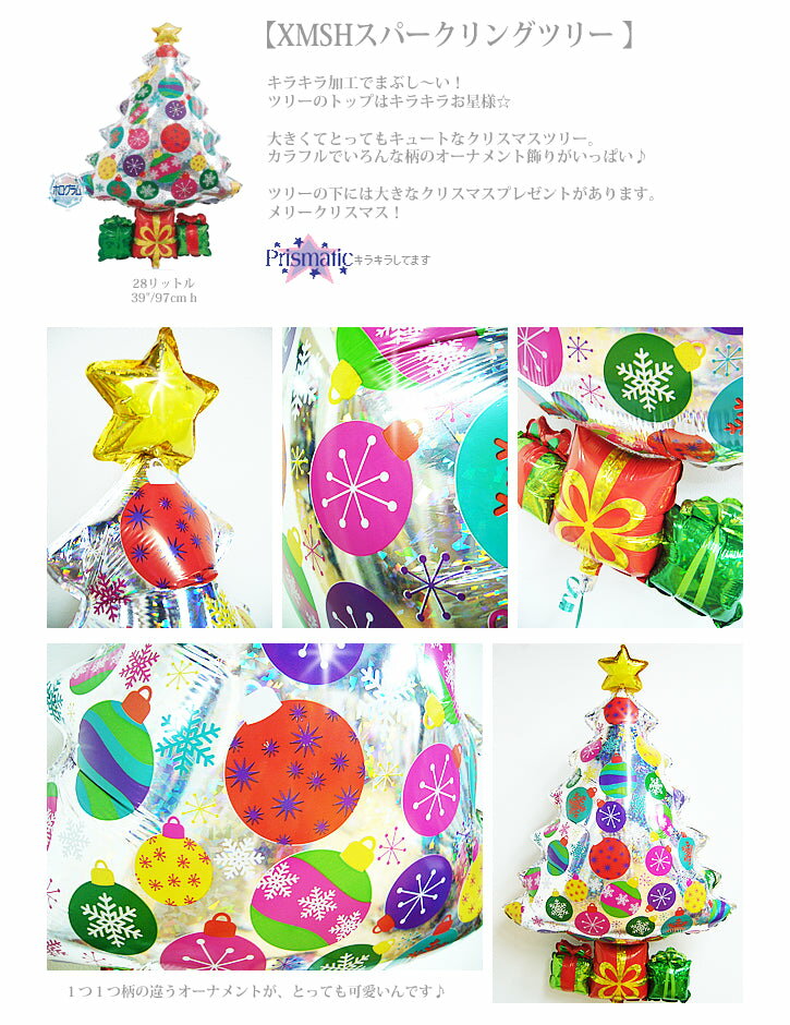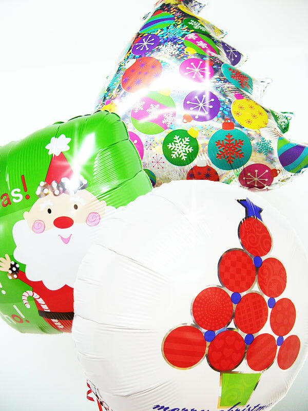 クリスマスにカラフルでかわいい柄のバルーン - XMホホホ!サンタ スパークリングツリー 3バルーンセット【補充用ヘリウムガス付・本州送料無料】