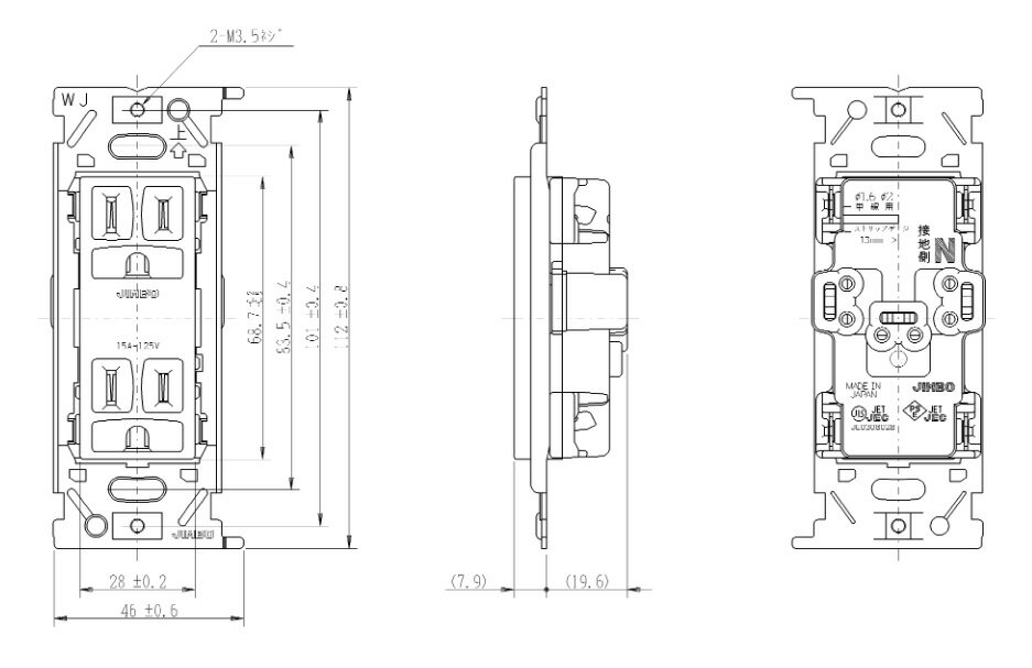 メーカー:JIMBO / 神保電器 シリーズ名: J・WIDEシリーズ 埋込コンセント ※この商品は電気工事士による取付工事が必要です。 資格を有しない一般消費者は、取付・取替工事を行うことは法律上できません。 ※受注生産品のためお時間をいただく場合がございます。※受注生産品のため、ご注文後の返品・交換・キャンセルは出来ませんのでご了承ください。 関連キーワード コンセント 埋込 JWIDE SERIES Jワイド■特徴 NKシリーズコンセント 垂直と水平の線、そして正円で構成されたシャープでシンプルな意匠 シンプルかつ最小限の意匠を追求しシャープなエッジを利かしたスイッチプレートはインテリアと美しく調和します。 JIS規格大角形モジュールのあらゆるスイッチ・コンセントと、自由に連接取付け可能。高い汎用性があります。 プレートは 1〜5連サイズをラインアップ。 簡易耐火仕様ですから、オフィスビルで多様されているメタルプレートからの置き換えも容易です。 ニューマイルドビー 一般住宅用からビル設備用まで、広く使われています。安全にらくらくご使用いただけるオーソドックスな配線器具です。 J・WIDEシリーズ やわらかさとやさしさを備えたデザイン。 国内最軽量を誇る操作性と、省エネルギーを追求した設計で、人にも地球にもやさしい21世紀のライフパートナーです。