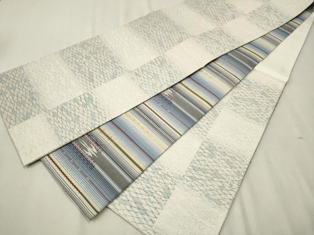 【10】16720 【 日本製 】 洗える 名古屋帯 全通柄 すぐ使える 名古屋 仕立上り ポリ 八寸名古屋帯 松葉仕立て【 国産 】 着物 小紋 紬 浴衣 帯 お太鼓 おしゃれ 普段着 レディース 松葉仕立て 通年 女性用 和装 ボーダー 縞 57 pngy508(4)