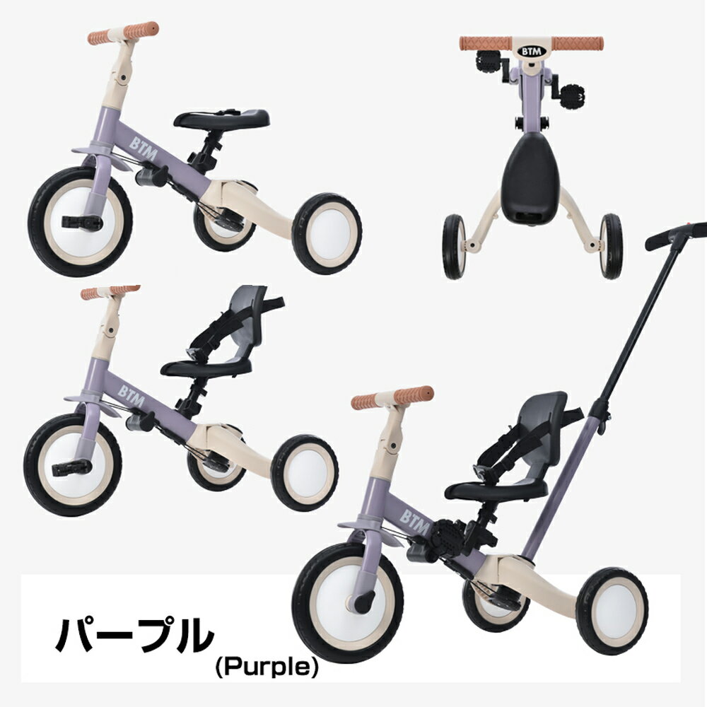 子供用三輪車 4in1 パープル 三輪車のりもの押し棒付き 自転車 おもちゃ 乗用玩具