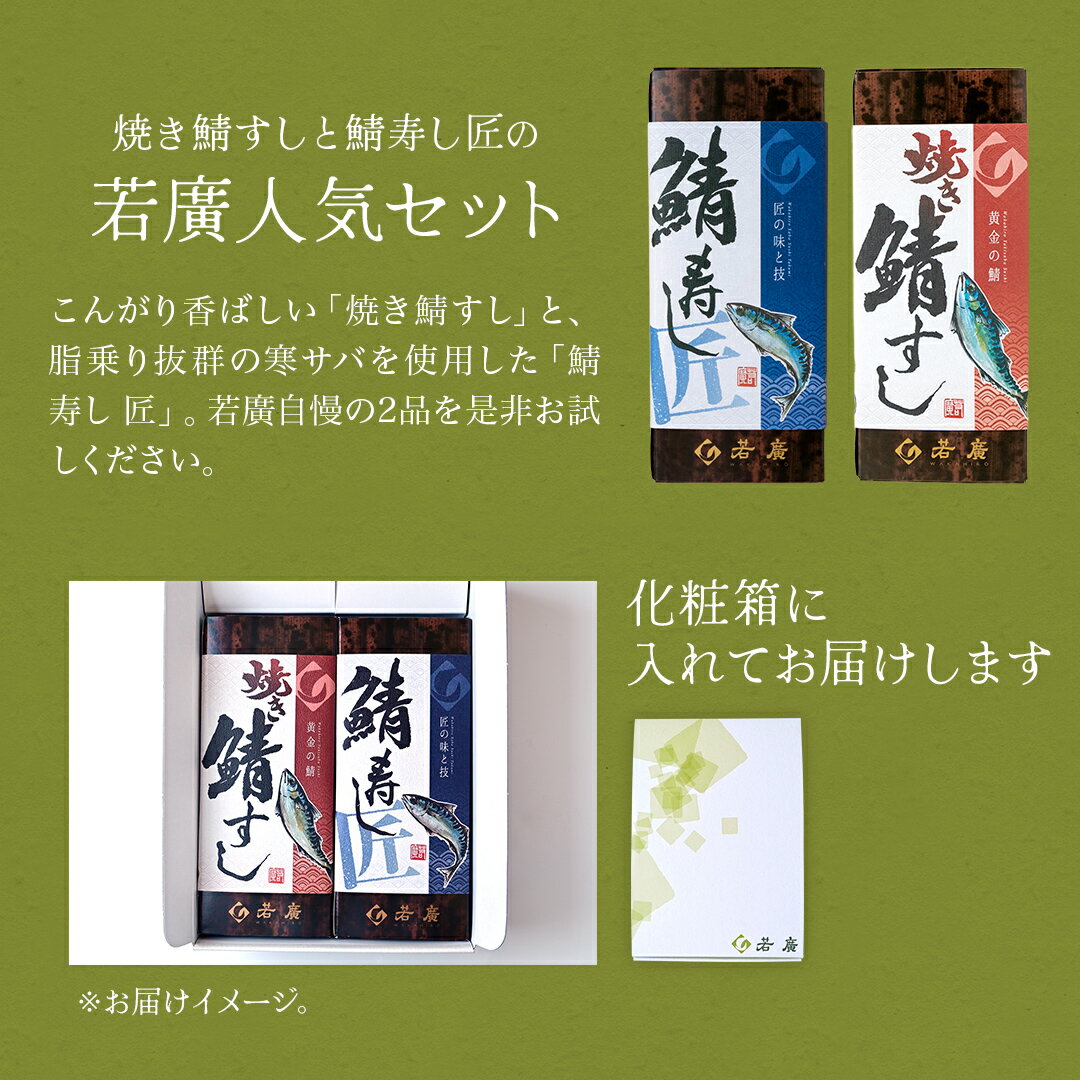 【 お歳暮 ギフト クーポンで10%OFF 】【 若廣 公式 】 焼き鯖すし 鯖寿し匠 味比べ 2本 セット 【 送料無料 】 鯖寿匠 鯖すし 8貫×2本 (カット済み) 2~3人前 骨取り ギフト プレゼント 贈り物 さば寿司 鯖 さば 寿司 絶品 お取り寄せ 鮨 福井名物 御歳暮 お歳暮
