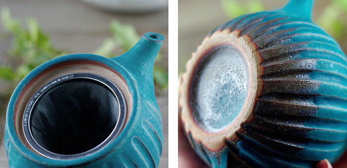 【max30%offクーポンあり】益子焼 シャビーターコイズ 丸ポット(大)(茶漉し付き) ティーポット 紅茶ポット 中国茶 緑茶 ジャンピング コーヒーポット ハーブティー 大き目 600cc 北欧 ナチュラル 和食器 かわいい ギフト 結婚祝い お家カフェ 母の日